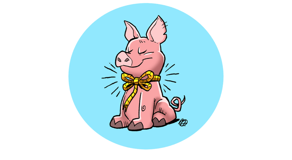 Kiedy chcemy opisać kogoś wyjątkowo szczęśliwego lub zadowolonego, to porównamy go w Hiszpanii do „świni, która pierwszy raz pokazuje się w kokardce” (hiszp. estar más contento que puerca/marrano estrenando lazo). Idiom ten roztacza dość komiczny obraz niezbyt urokliwego zwierzęcia, które cieszy się z nowej ozdoby i dumnie się z nią obnosi, mimo że jej faktyczna wartość czy użyteczność nie jest zbyt wysoka. Z tego powodu wyrażenie to podkreśla radość z czegoś, co wydaje się być czymś małym czy trywialnym, ale dla danej osoby może mieć wyjątkowo duże znaczenie.
